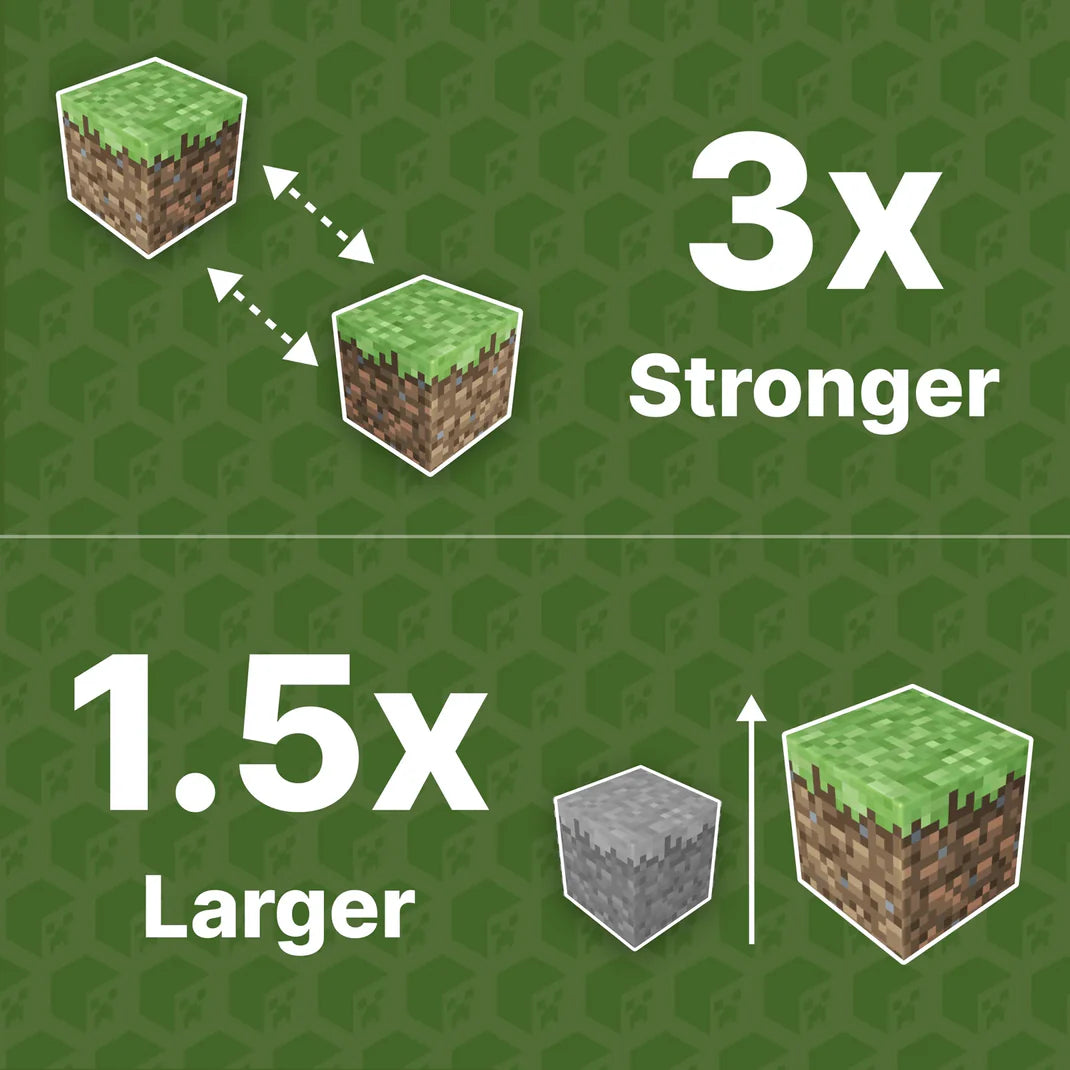 Our blocks are 50% larger for improved safety, better handling, and bigger designs.